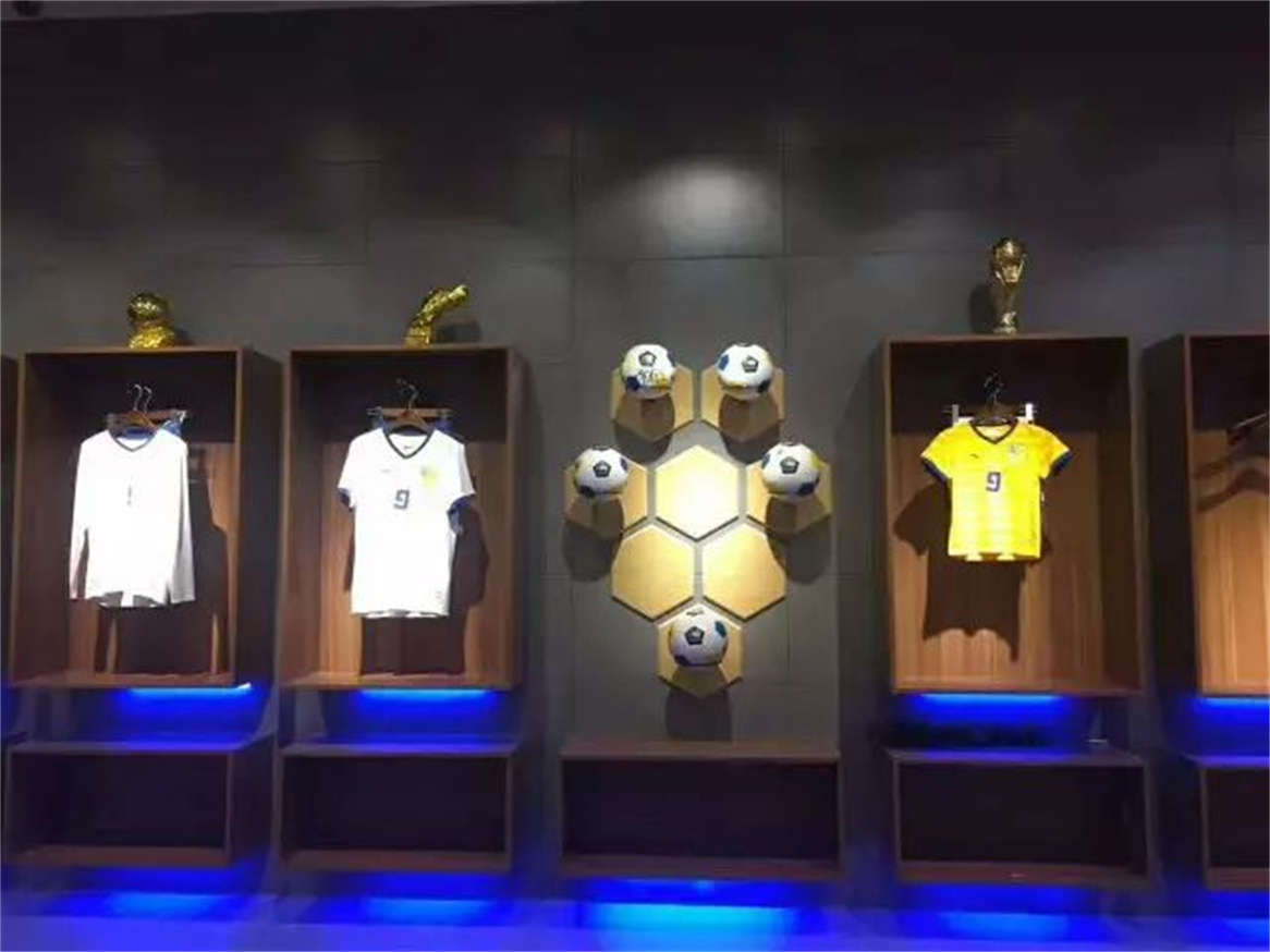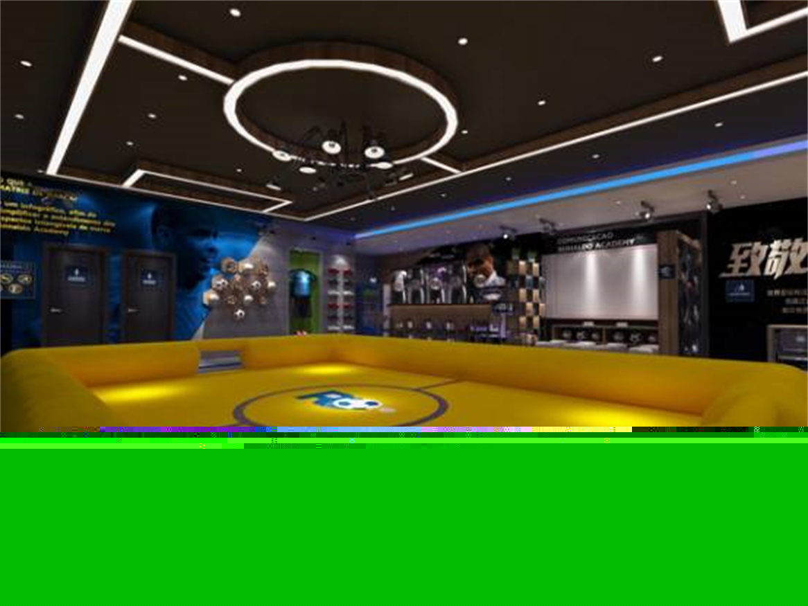 此次由勤略品牌設計機構擔綱規劃設計的羅納爾多足球學院體驗中心,在總體規劃布局上合理劃分了七大功能區。為了滿足室內足球的訓練及體驗等功能,以中心球場為主,環繞式的劃分了:接待區、咨詢洽談區、外教辦公區、投影教學區、休閑水吧、顧客更衣室,商品陳列被靈活的穿插進所有的功能區。