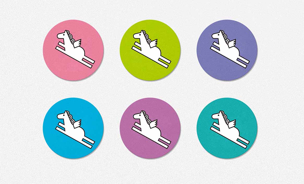 用帶有童話色彩的會(huì)飛的卡通木馬為品牌主視覺元素,