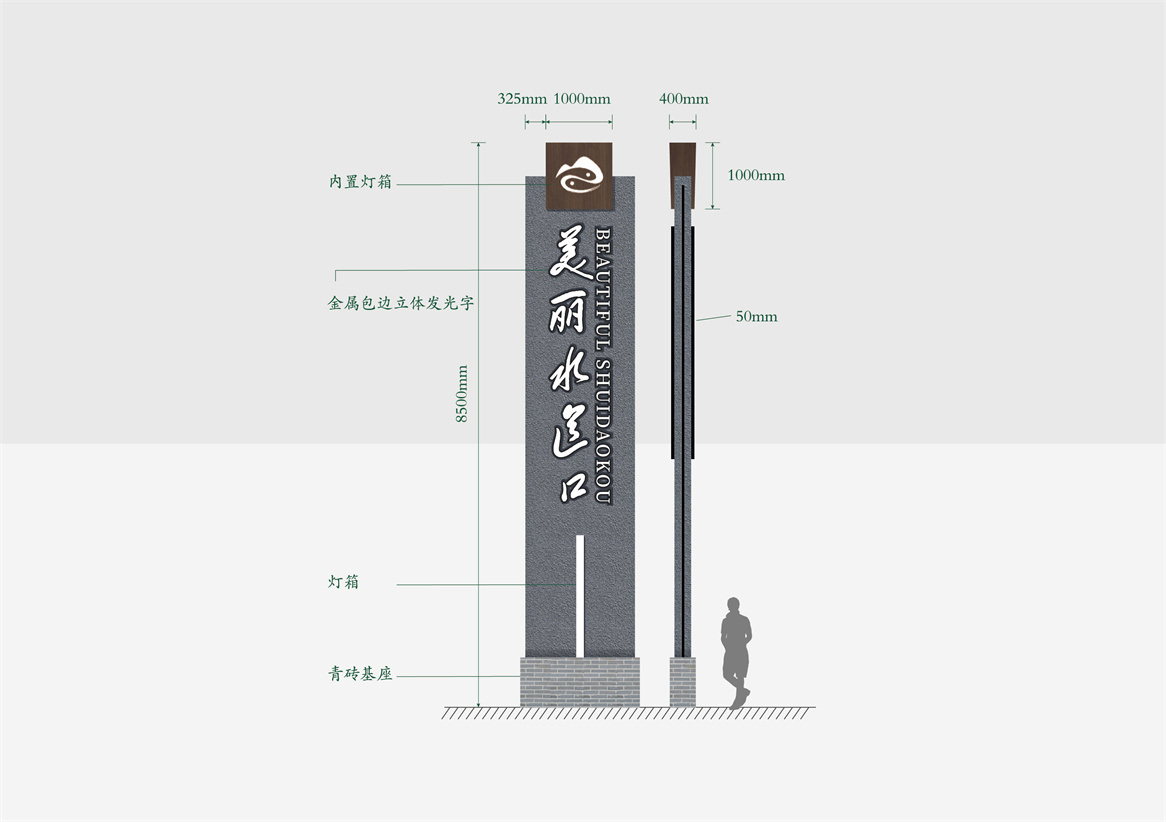 標志設計以常青藤綠為主色系。常青藤一年四季都保持翠綠的顏色,預示春天長駐。它生機勃勃,象征著希望與青春活力、不朽與永恒。標志設計整體美觀大方有文化內涵,傳遞出水道口“山水道”的品牌形象設計定位,極盡巧妙的表達了水道口品牌的深刻內涵和文化底蘊。它既存在于水道口有形的山水情景感受之中,又藏匿在觀者和悟者的思想深處。
