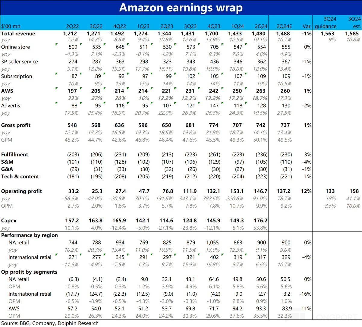 a. AWS 收入同比增長從第一季度的 17.2% 加速至第二季度的 18.8%;推動因素:1)客戶公司成本優(yōu)化已完成,聚焦新努力;2)推進基礎(chǔ)設(shè)施現(xiàn)代化,遷移至云端、3)積極應(yīng)用 AI,需求激增