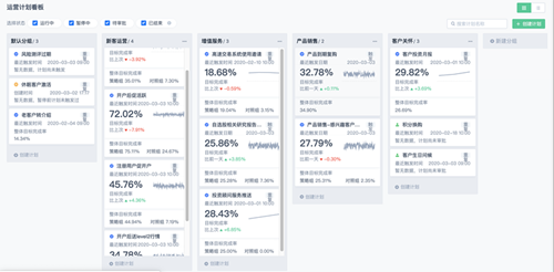 下圖是根據(jù)方案做的demo,可以清楚地從運(yùn)營(yíng)計(jì)劃看板監(jiān)控運(yùn)營(yíng)計(jì)劃、類型、內(nèi)容及執(zhí)行數(shù)據(jù)情況,對(duì)于很多公司來說,這個(gè)運(yùn)營(yíng)計(jì)劃看板省去了大量的繁雜工作量,可以實(shí)時(shí)監(jiān)測(cè)運(yùn)營(yíng)活動(dòng)進(jìn)展,采取有效的干預(yù)、預(yù)防、挽留措施。