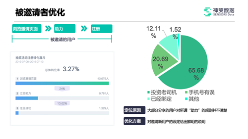 針對(duì)被邀請(qǐng)者在點(diǎn)擊助力后沒有注冊(cè)成功的原因之一是很多人已經(jīng)是現(xiàn)有客戶,原因之二是用戶手機(jī)號(hào)輸入錯(cuò)誤,這兩類原因占比85%以上,這說明大家并不清楚規(guī)則,再者其社交裂變能力差,因?yàn)榛顒?dòng)的獎(jiǎng)勵(lì)小,對(duì)于老客戶和新客戶在最后的參與意愿都不太高,如下圖。