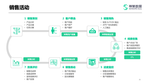 產(chǎn)品銷售活動(dòng)在證券公司是一個(gè)熱門活動(dòng)形式,可以說,企業(yè)想做財(cái)富管理轉(zhuǎn)型,產(chǎn)品銷售是不可或缺的一步。同樣,銷售活動(dòng)也可以按照運(yùn)營(yíng)閉環(huán)來做,如下圖,我們將其分為了7個(gè)步驟: