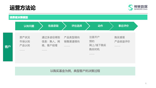 對(duì)于運(yùn)營(yíng)我們先講一下方法論,以購(gòu)買 基金為例,通過典型客戶的決策過程,來具體講解運(yùn)營(yíng)方法論。
