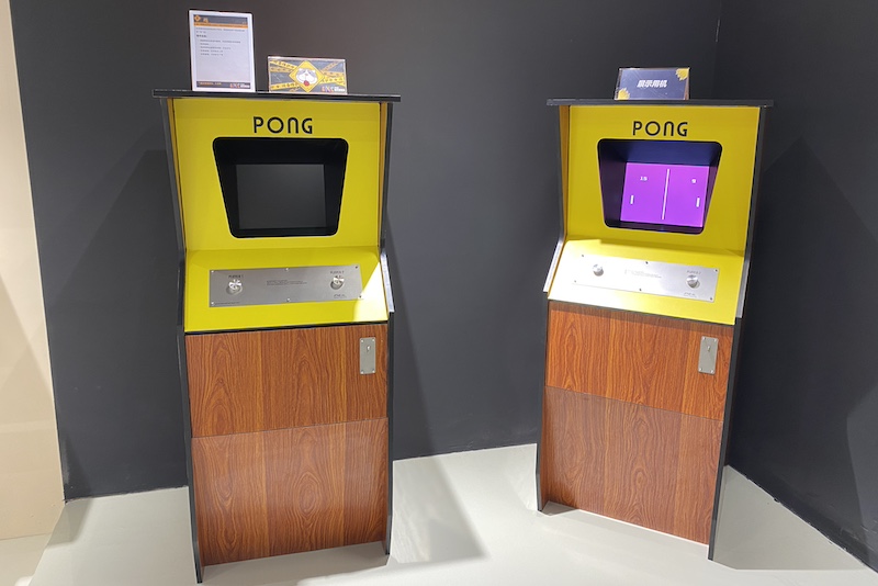 最早的電子游戲主要是模仿體育運動和棋類游戲。1972年11月29日在美國上市的街機游戲《乓》大獲成功,它是模仿乒乓球的雙人對戰游戲。原型機在一家酒館里測試時,沒幾天就壞了,原來是硬幣已經塞滿了,可見有多受歡迎,其成功驗證了電子游戲的商業潛力。展館內設置了兩臺《乓》街機體驗機,供觀眾試玩。